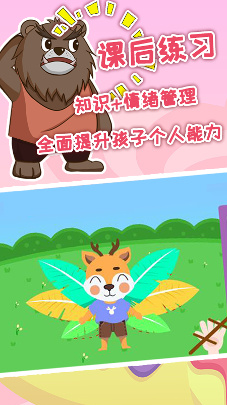 3、采用動畫+繪本+知識問答+場景設計的獨特模式,多維內容,趣味互動,激發孩子學習驅動力,充分認識情緒。